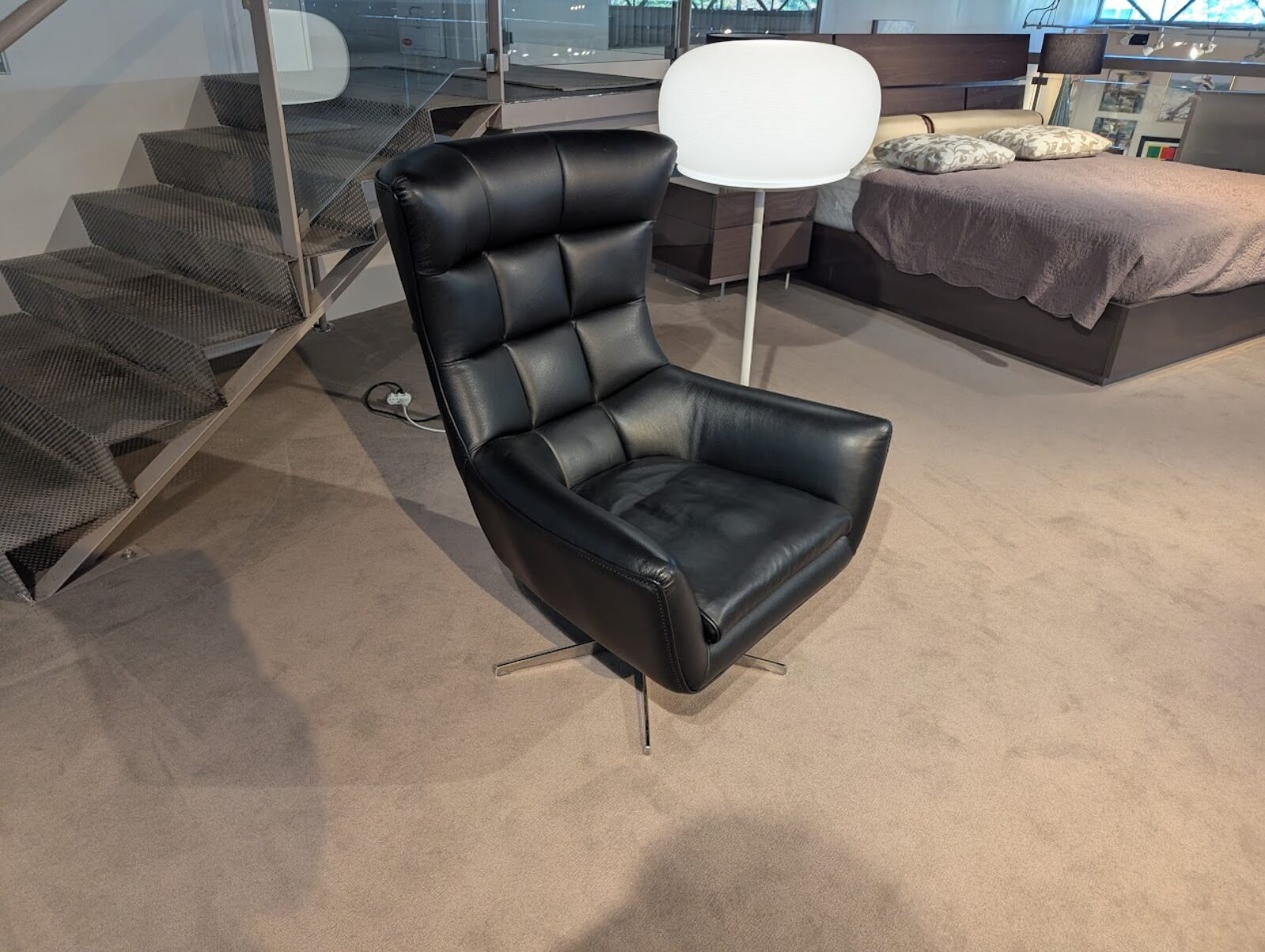 Elevate your living or workspace with this sophisticated swivel chair, featuring a high back upholstered in luxurious Italian leather. Designed to combine style and comfort, this chair offers a sleek, modern look that perfectly complements any contemporary interior. Its high back provides excellent support, promoting good posture whether you're working, relaxing, or entertaining guests.