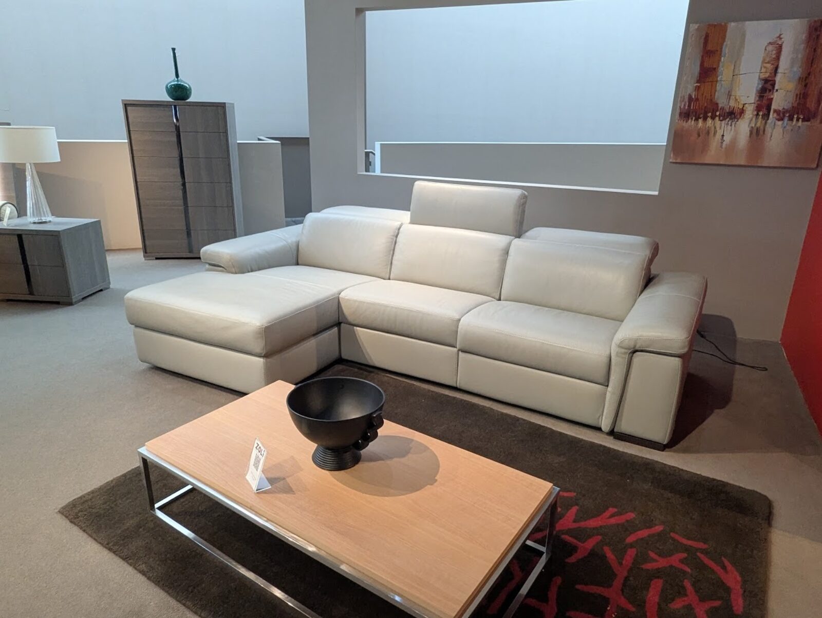 The functionality doesn’t stop at its layout. Maria is shown in a sophisticated pearl grey leather that’s soft to the touch and easy on the eyes. Prefer a bolder hue or something more neutral? We offer a wide range of leather colors to complement your unique interior style.
