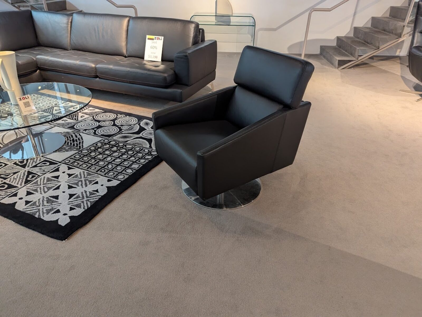 So why labor over the obvious? A stunning European designed frame with leather upholstery and paneled arms and a reclining head cushion, a shining polished aluminum base, and a swivel feature allowing for total security ? (No one can sneak up on you that way.) Now we've done it. Shared all of Nea's secrets.